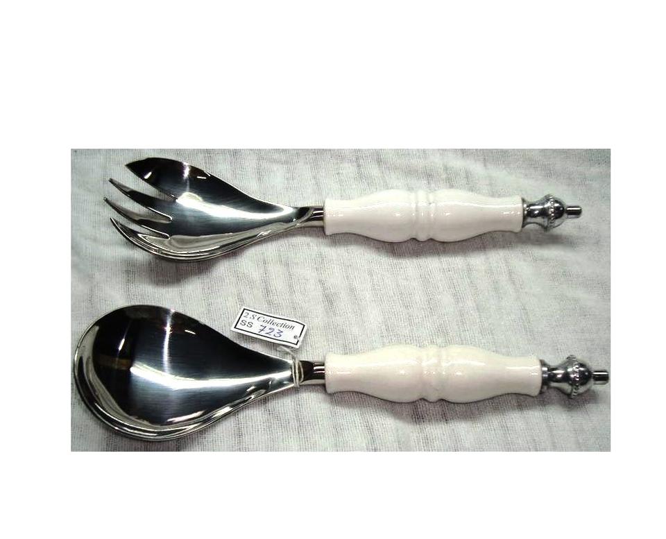 Cuillères à salade en acier inoxydable avec poignée en résine de couleur blanche