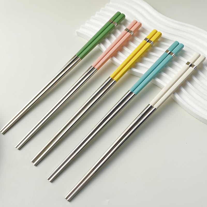 Baguettes créatives style macaron en acier inoxydable 304, 24 cm, couleur unie, cinq paires, coffret cadeau, usage domestique