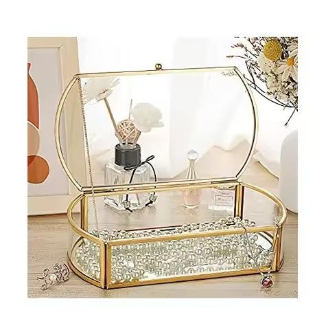 Creative Metal Glass Jewelry Storage Box Organizer for Rings Earrings Necklace Accessories