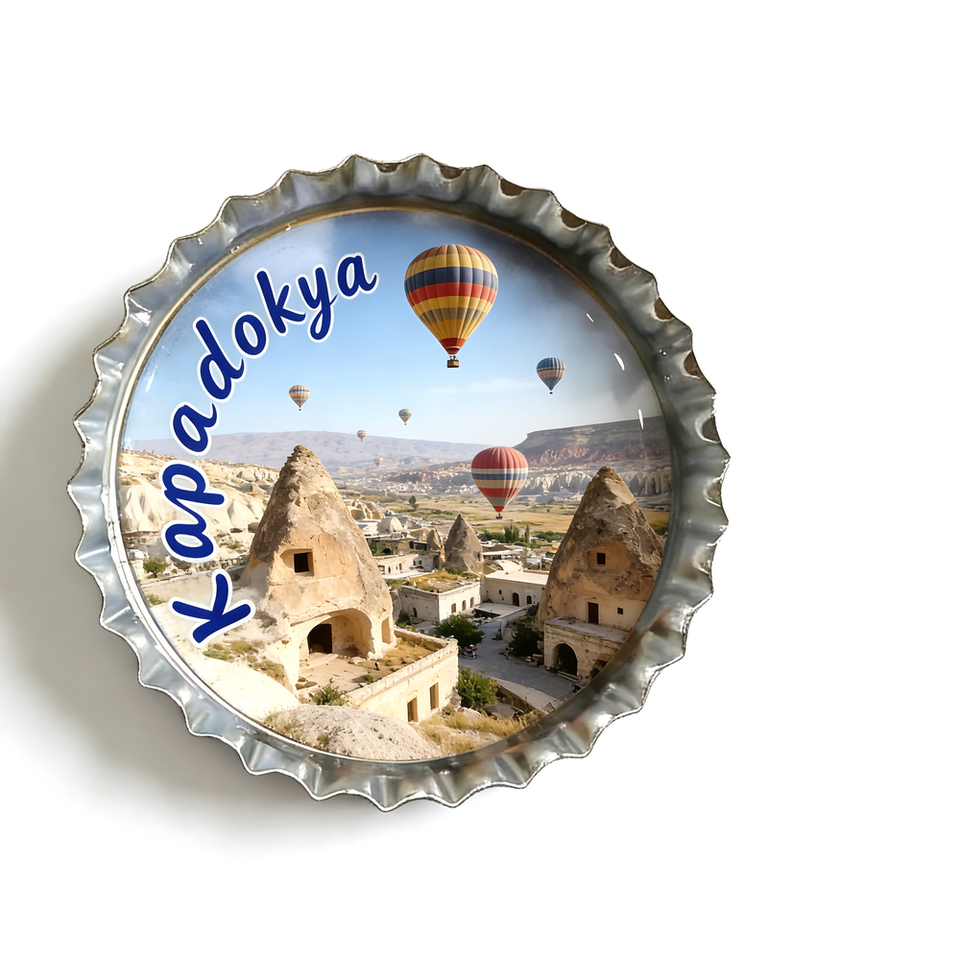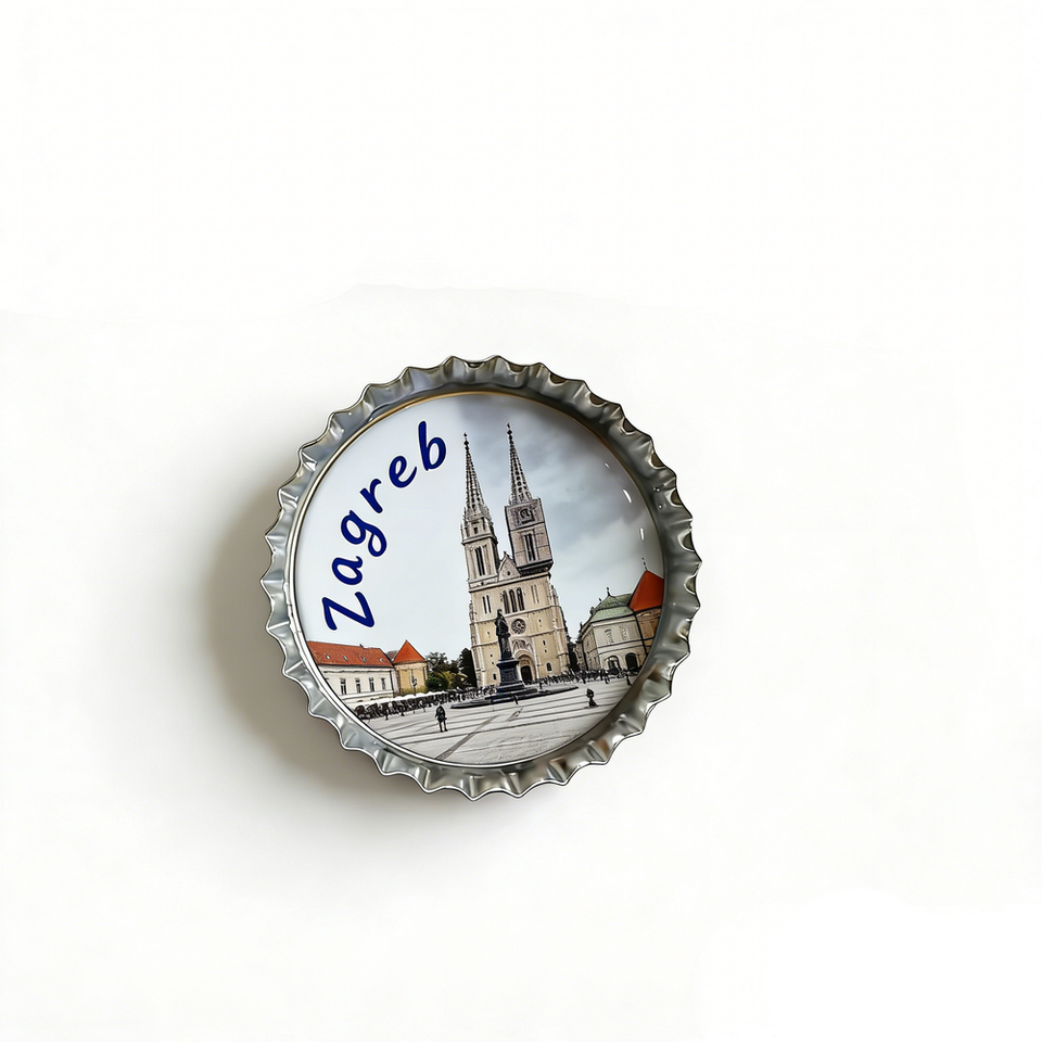 Aimant de réfrigérateur personnalisé en métal créatif, motif Bouchon de bouteille, Grande Barrière de Corail, Pompei, Andorra, Cappadocia, Zagreb