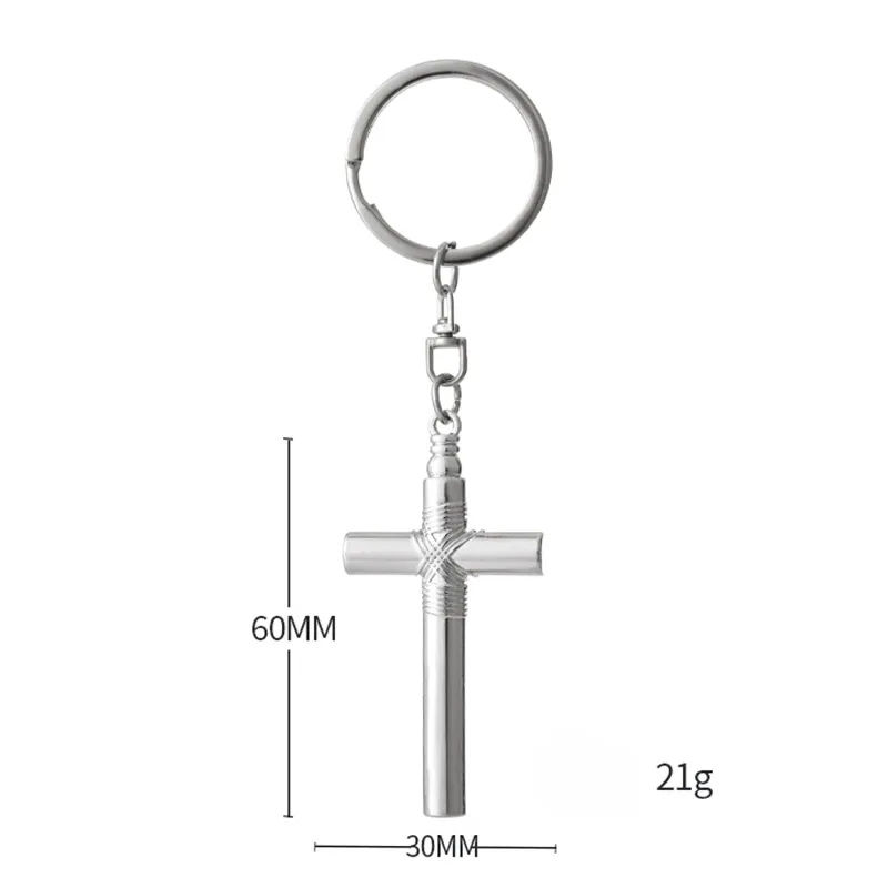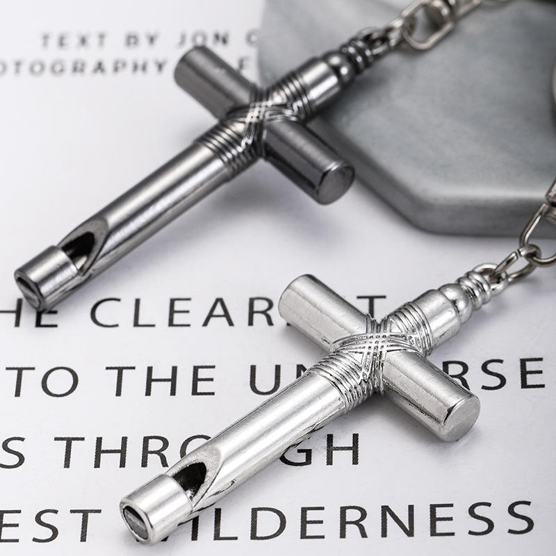 Porte-clés croix sifflet en métal créatif, couleur argent