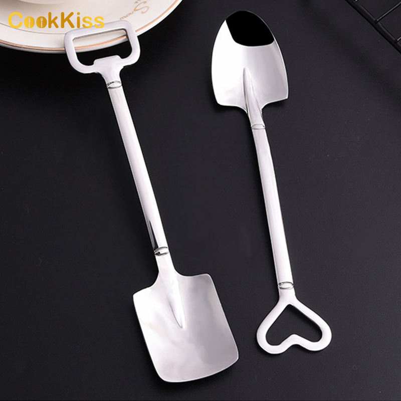 Mini cuillère de couverts créative en acier inoxydable Design mignon de pelle pour la crème glacée Dessert lait thé yaourt fruits
