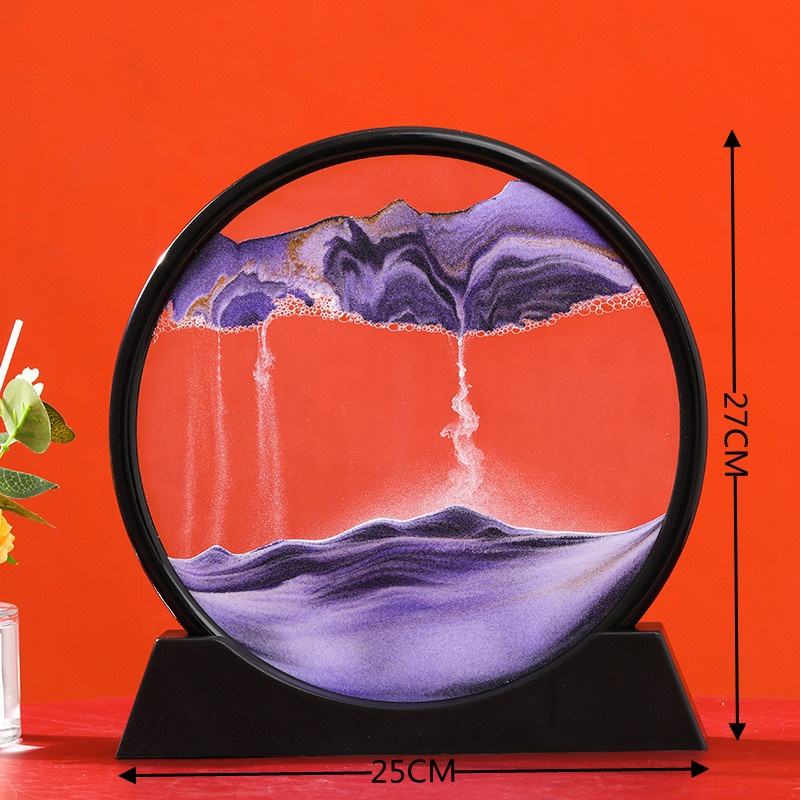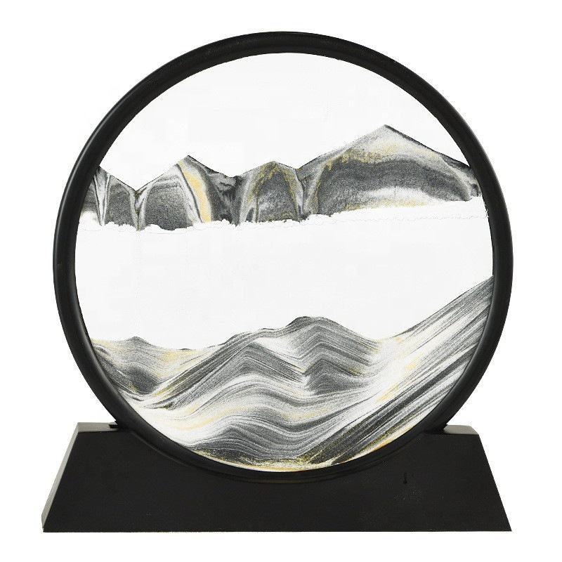 Peinture de sable 3D moderne créative de 7 pouces avec base en bois, ornements de sablier en verre de luxe pour la décoration du salon