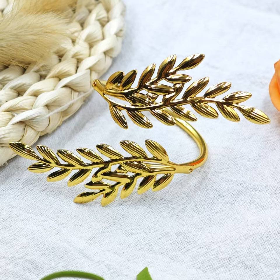 Anneaux de serviette de table créatifs, modernes, durables et écologiques en forme d'épi de blé, en fer doré et argenté, pour décoration de mariage