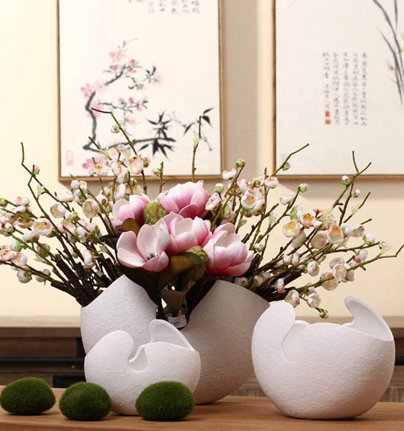 Style moderne créatif coquille d'oeuf blanche artisanat ornements décoratifs en céramique Arrangement de fleurs Vase à fleurs