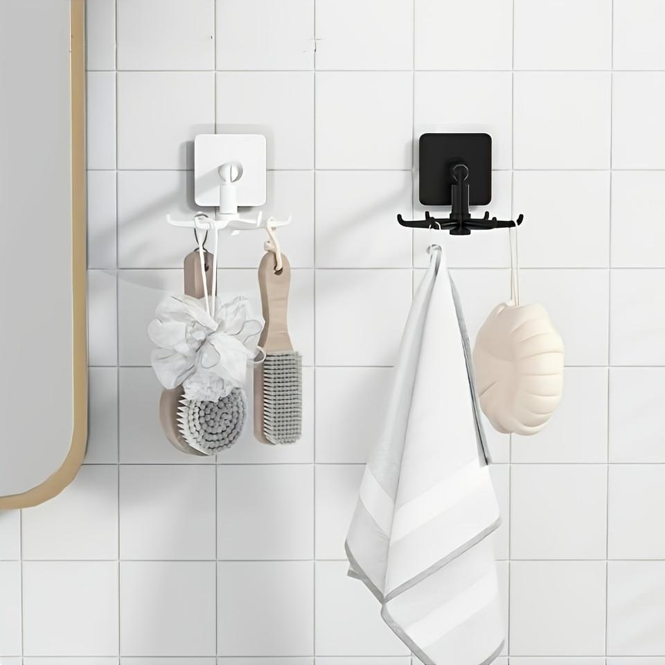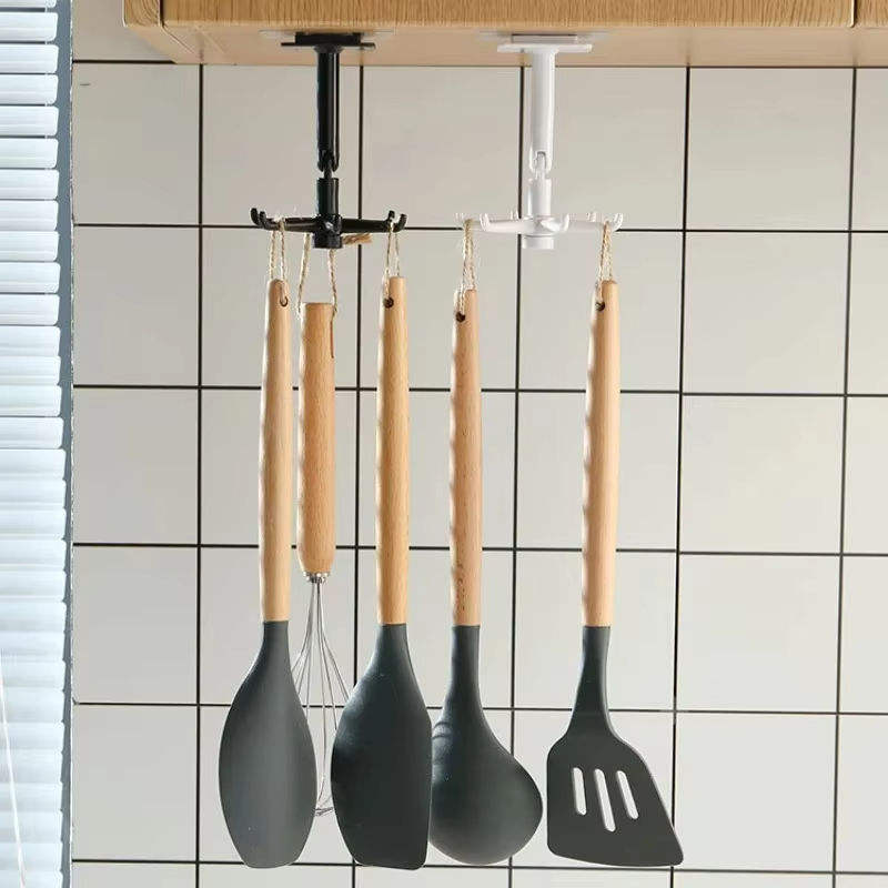 Crochet rotatif multifonctionnel créatif, rotation à 360 degrés, sans trace, crochet adhésif, crochet sans perçage pour la cuisine, cuillère, 6 crochets
