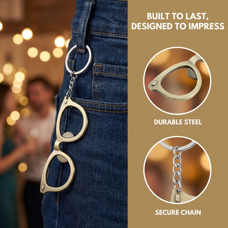 Nouveau porte-clés créatif 3-en-1 en acier inoxydable : décapsuleur carré pour verres et bouteilles de vin - Cadeau portable