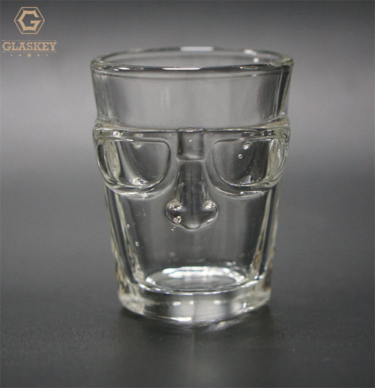 Verre à shot créatif 3D en forme de visage avec nez et lunettes, verre à spiritueux artistique transparent de 75 ml pour Tequila Whisky Rhum