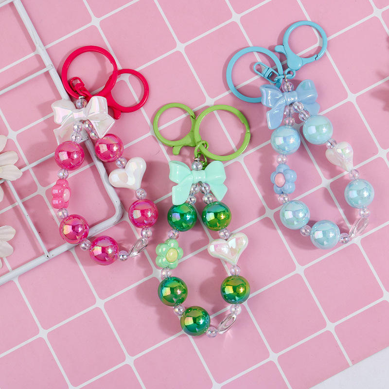 Résine créative couleur bonbon plaqué nœud papillon coeur fleur perlée décoration pendentif voiture porte-clés sac ornement