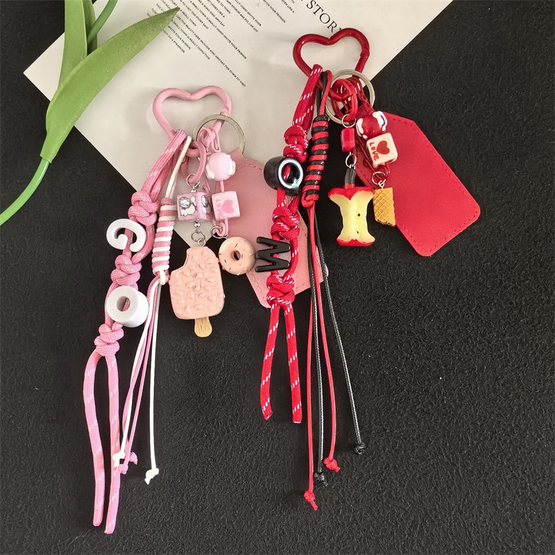 Creative Résine Fruit Porte-clés Nouvelle Couleur Pendentif Lettre Suspendus Corde Sac Suspendu Décoration Petit Cadeau