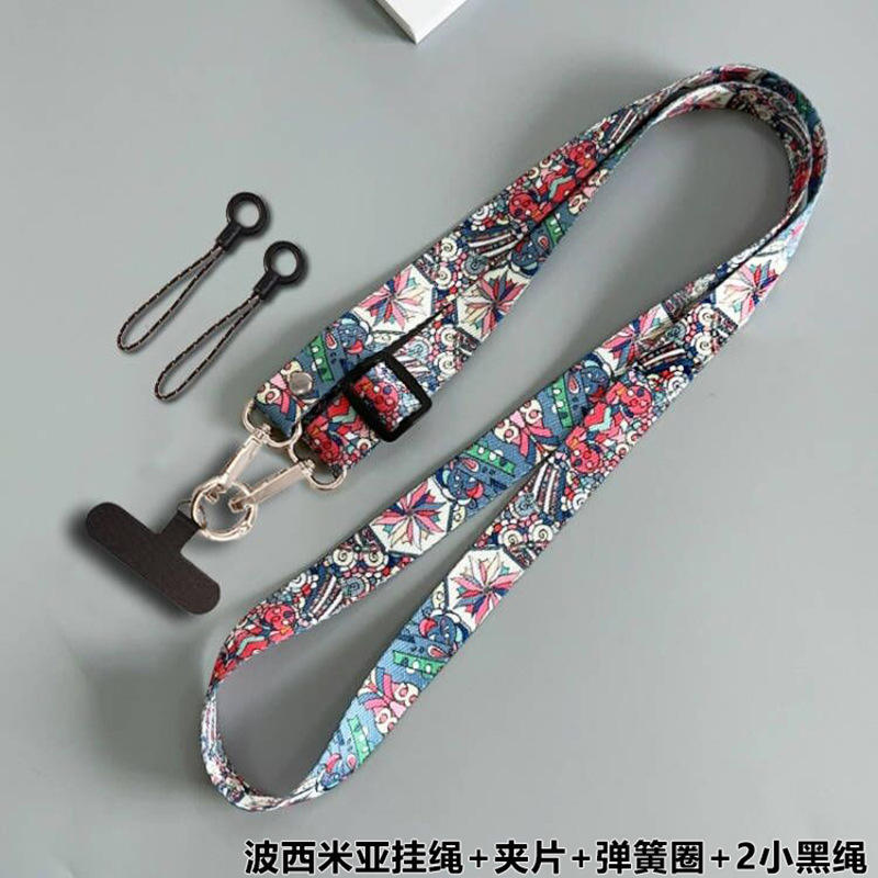 Sangle de téléphone créative rétro ethnique à motif de dessin animé en polyester imperméable et légère, détachable, chaîne longue diagonale pour le cou