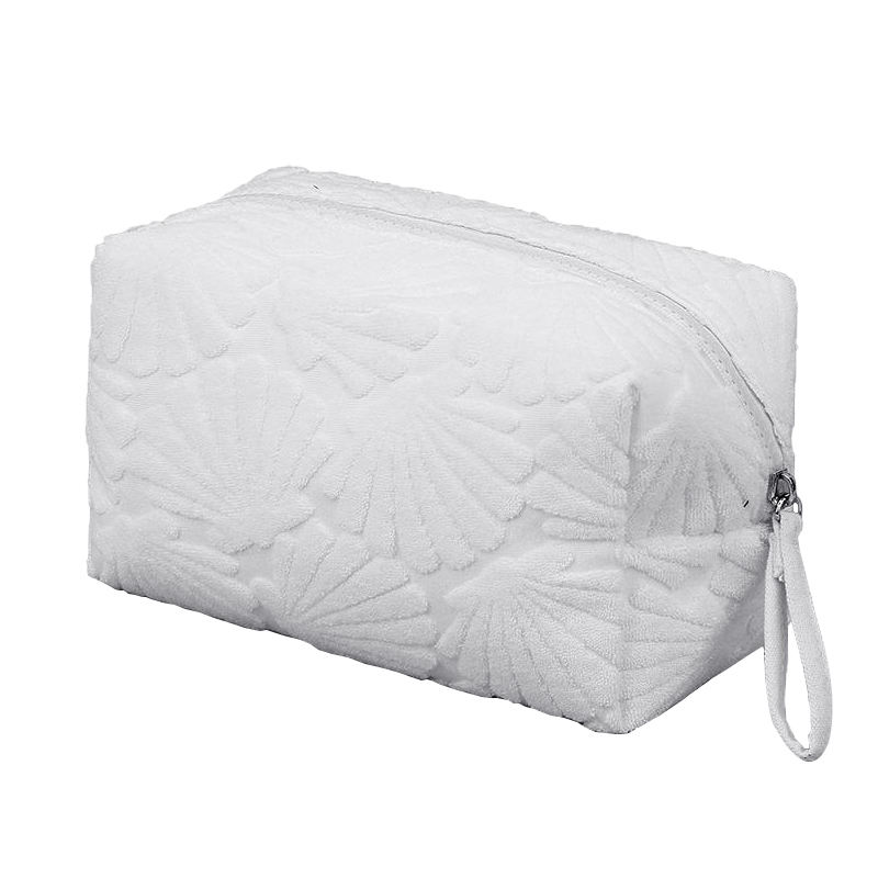 Sac de toilette en coton jacquard à motif coquillage créatif pour femmes, sac de maquillage en tissu éponge pour les voyages