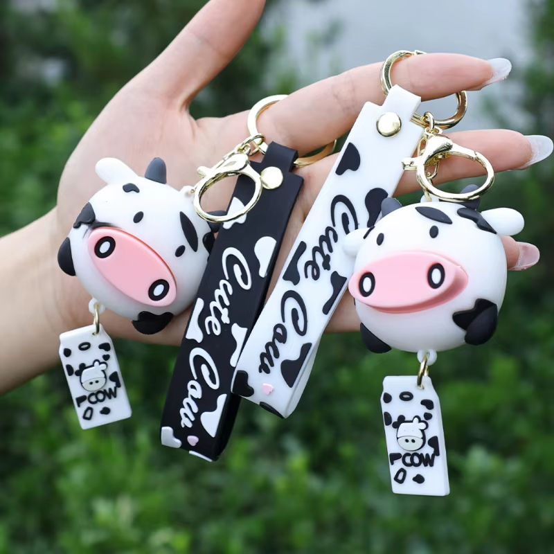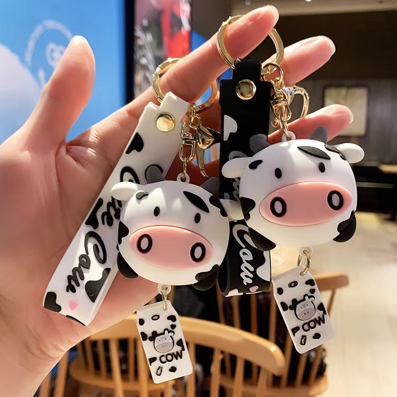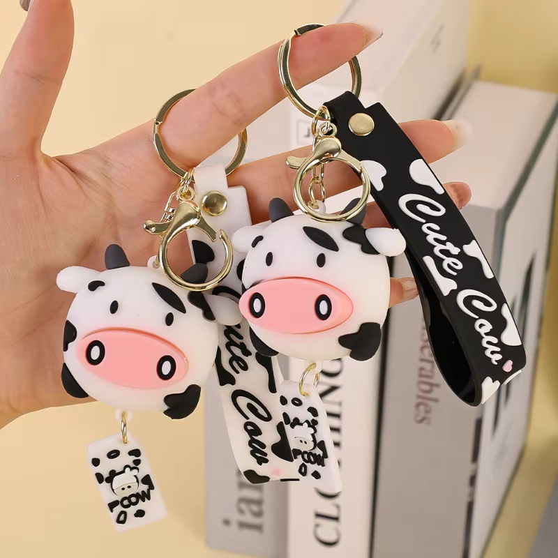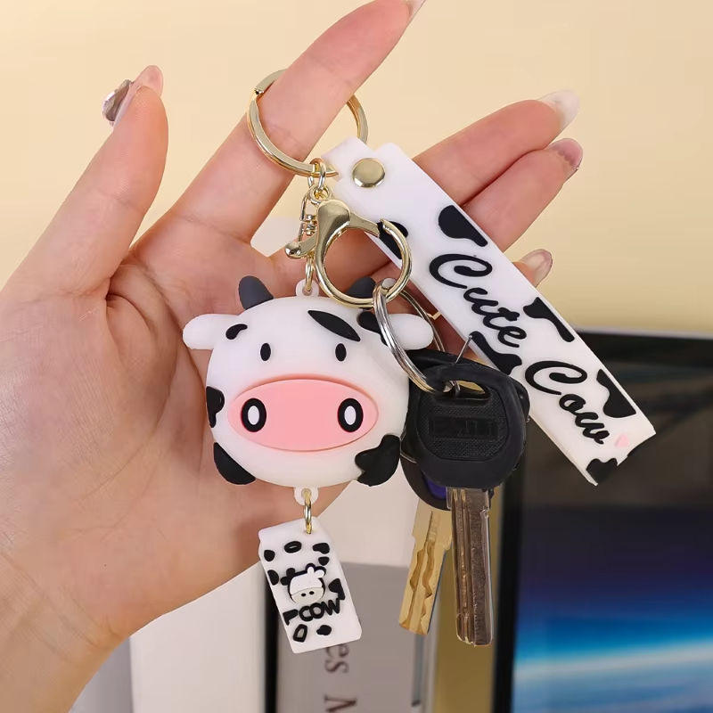 Porte-clés de voiture créatif en silicone en forme d'animal (vache, chat mignon de dessin animé), pendentif de sac, accessoire de clé, objet décoratif