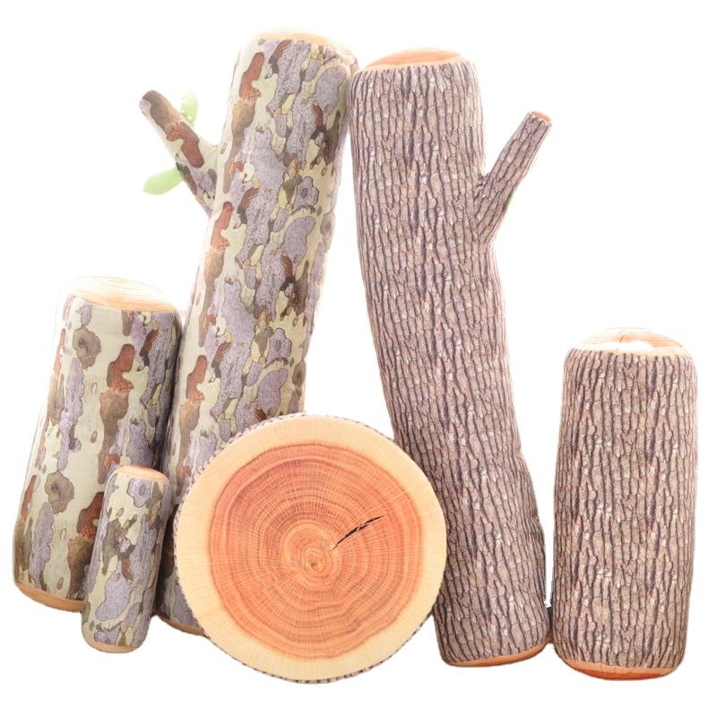 Oreiller en bois de souche d'arbre de simulation créative Sycomore Ginkgo Coussin d'arbre en peluche Bande de couchage Oreiller Impression couleur