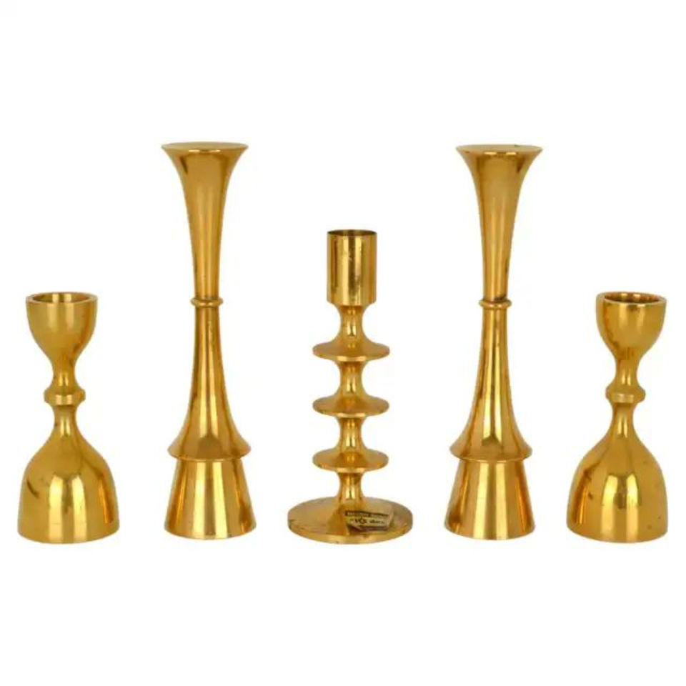 Ensemble de 5 bougeoirs en laiton massif, design moderne, pour une décoration élégante de la maison, prix bas.