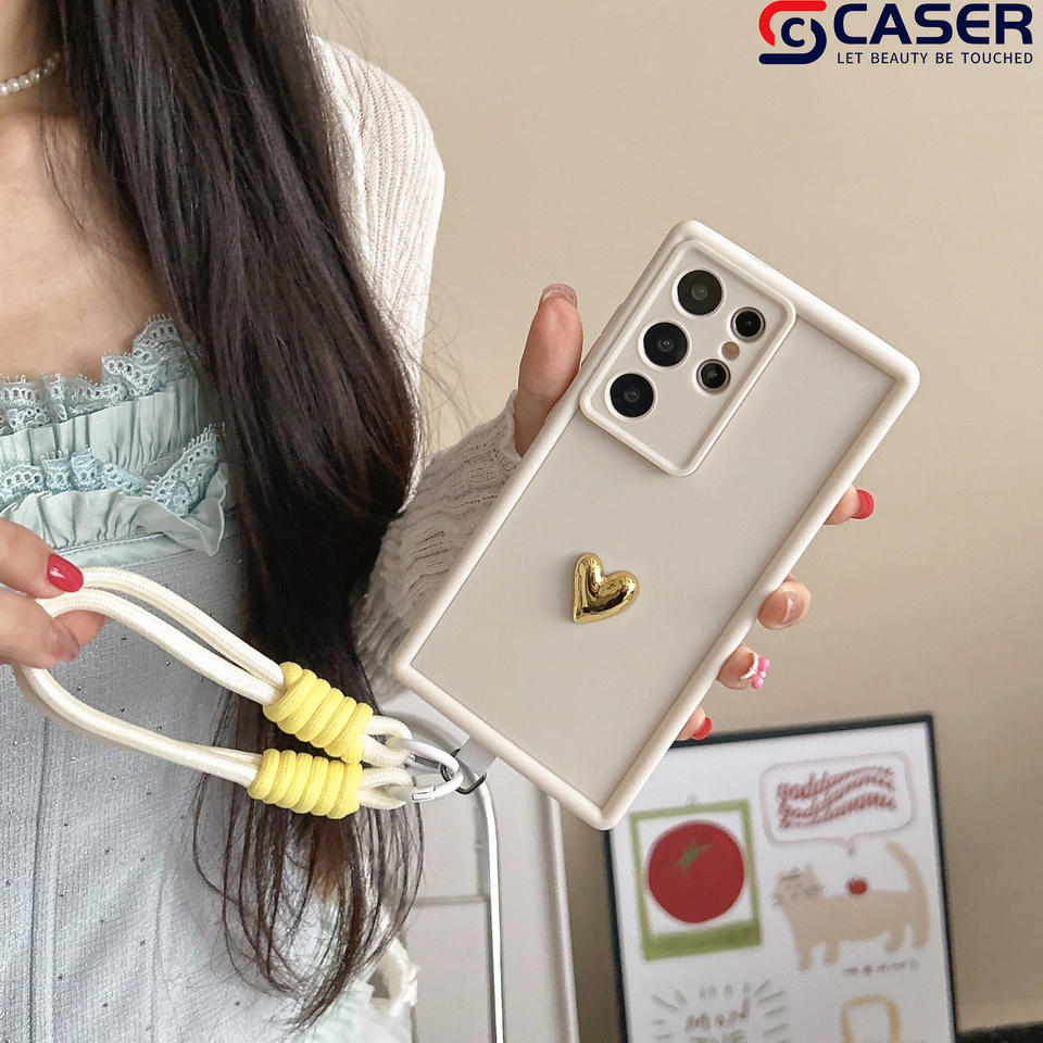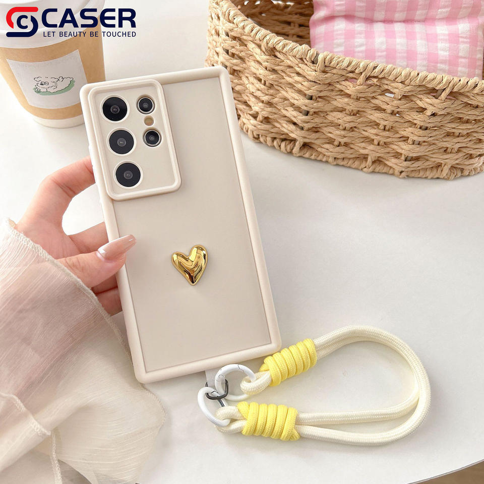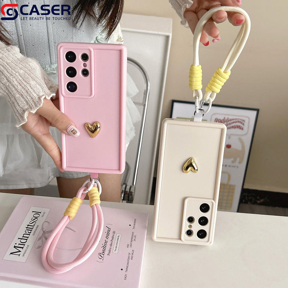 Coque de téléphone portable créative couleur unie Premium Sense petite lanière d'amour pour Samsung S21 S22 S23 S24 S25 Plus ULTRA S24FE