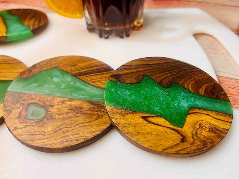 Creative Square Acacia Wood and epoxy Coasters for Tea Coffee Drinks Marble Wood Coaster Set for Bar Home