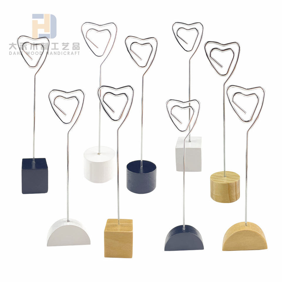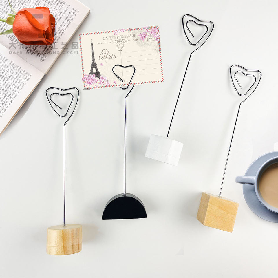 Wooden Card Photo Holder Wood Block with Heart Shaped Iron Clip