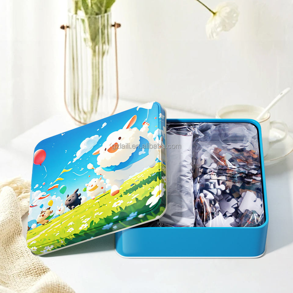 Casse-tête carré créatif en étain Biscuits au beurre Coffret cadeau OEM Logo personnalisé Jeux de famille pour enfants Biscuits aromatisés à la crème au chocolat sans sucre