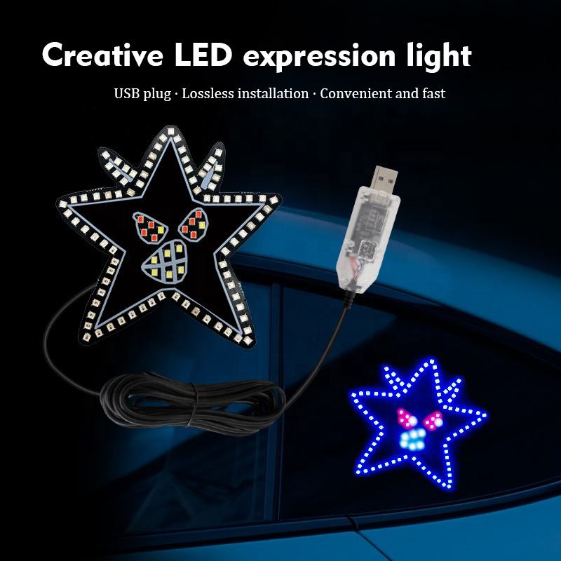 Lampe LED créative de décoration de véhicule alimentée par USB à motif d'étoile Lumière de fenêtre de voiture Lumière d'expression animée enfichable par USB pour voitures