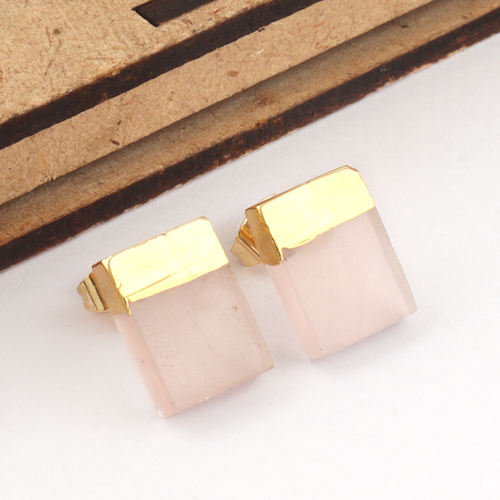 Boucles d'oreilles créatives élégantes demi-or jaune électroplaqué à l'arrière, Quartz Rose naturel, pierre de naissance de janvier, minuscule