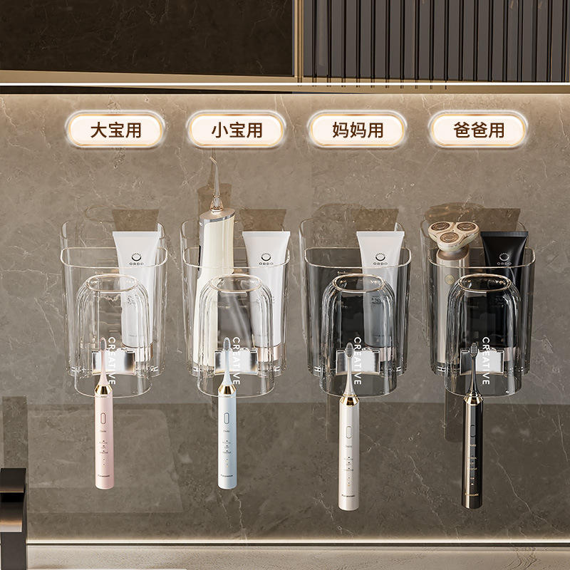 Support mural transparent gris créatif pour brosses à dents avec drainage, pour rangement de salle de bain, facile à nettoyer