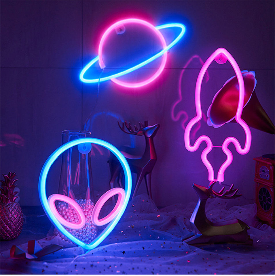 Lampe Néon LED USB Créative en Forme de Fusée et de Planète, Veilleuse pour Fêtes, Mariages, Remises de Diplômes, Diwali, Ramadan, Thanksgiving, Décoration Murale