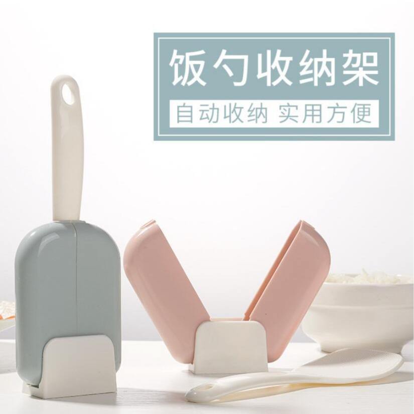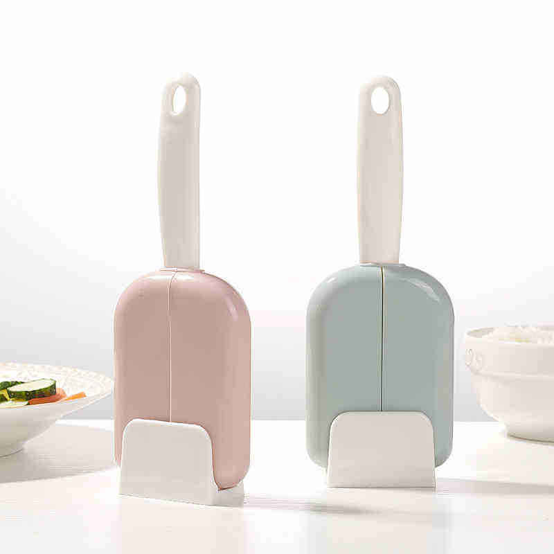 Cuillère à riz créative avec couvercle automatique, grande taille, pour la cuisine et la maison, en plastique rose, bleu, gris
