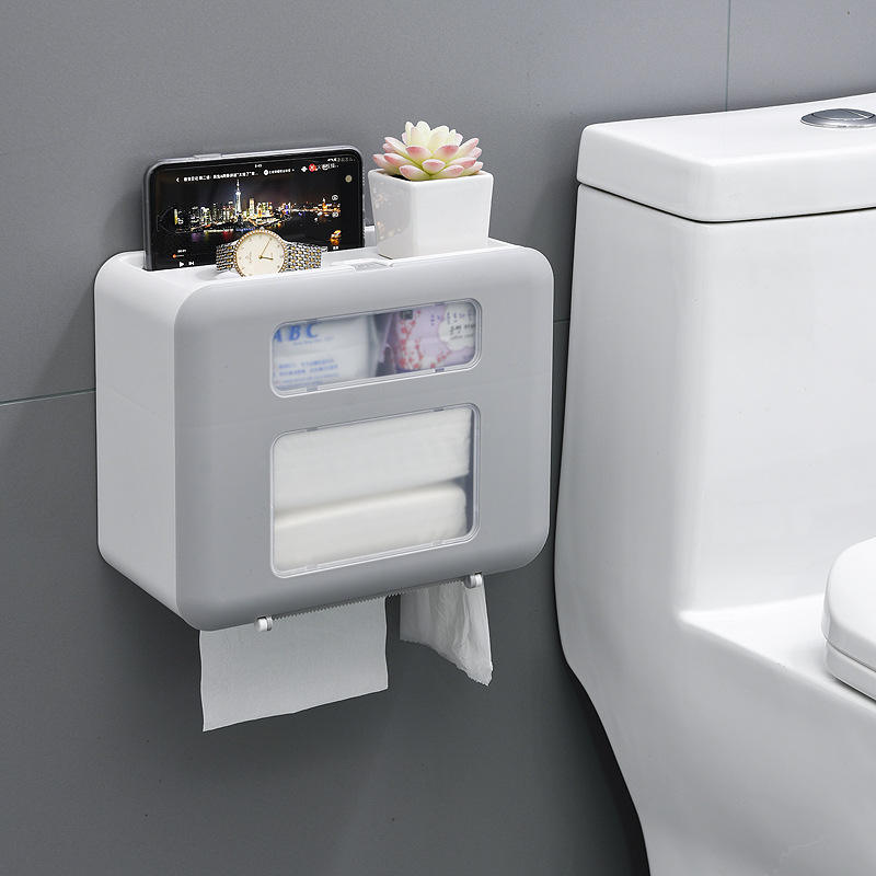 Boîte à mouchoirs murale créative, porte-papier toilette, étanche, rectangulaire, blanc, sans perçage, multifonctionnel, pour salle de bain