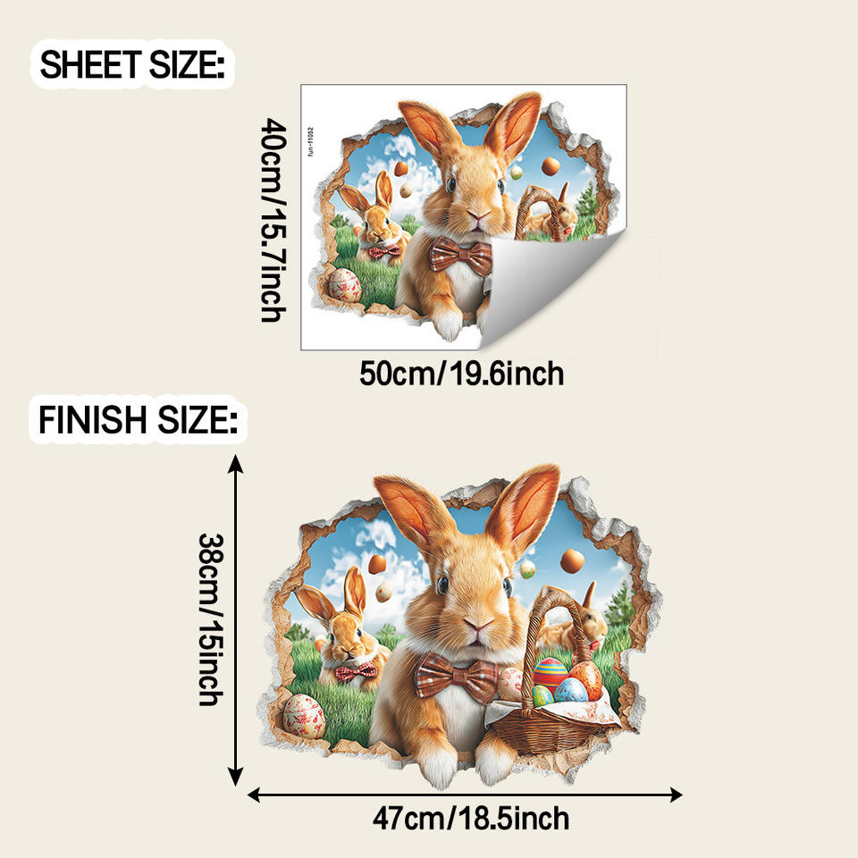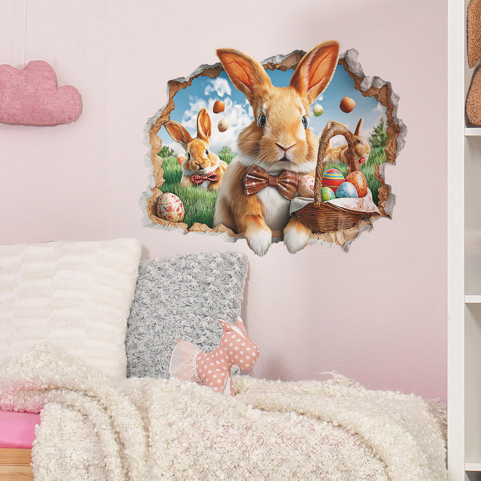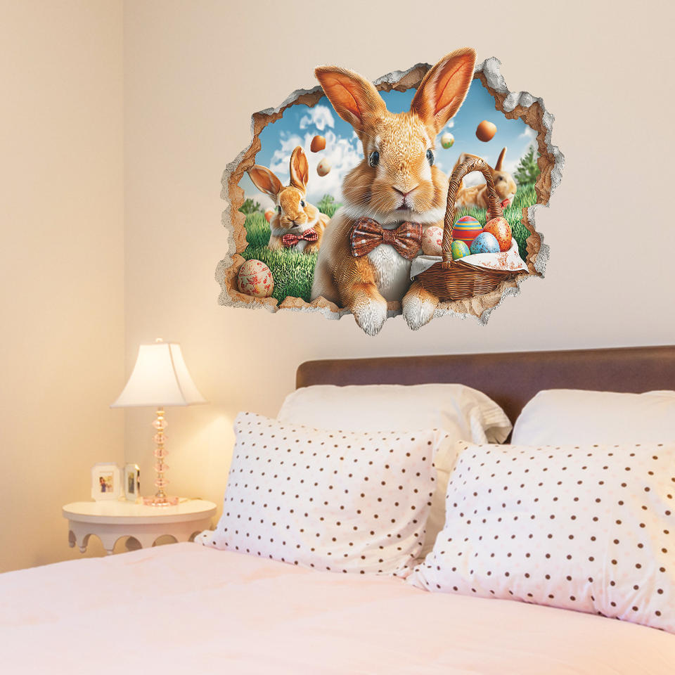 Autocollants muraux 3D créatifs en forme de lapin briseur de mur, autocollants muraux en vinyle PVC, œufs de Pâques, dessins animés pour chambre d'enfant