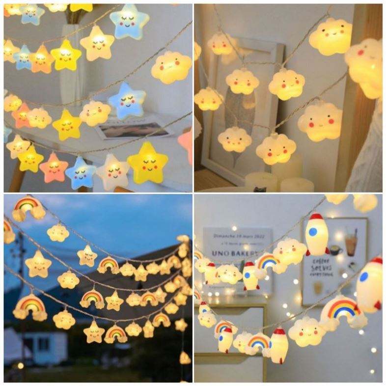 Guirlande lumineuse créative USA Mairun Nuages Blancs Sourire Étoile pour la décoration de chambre d'enfant et de tente, certifiée IP67, alimentée par batterie DC12V