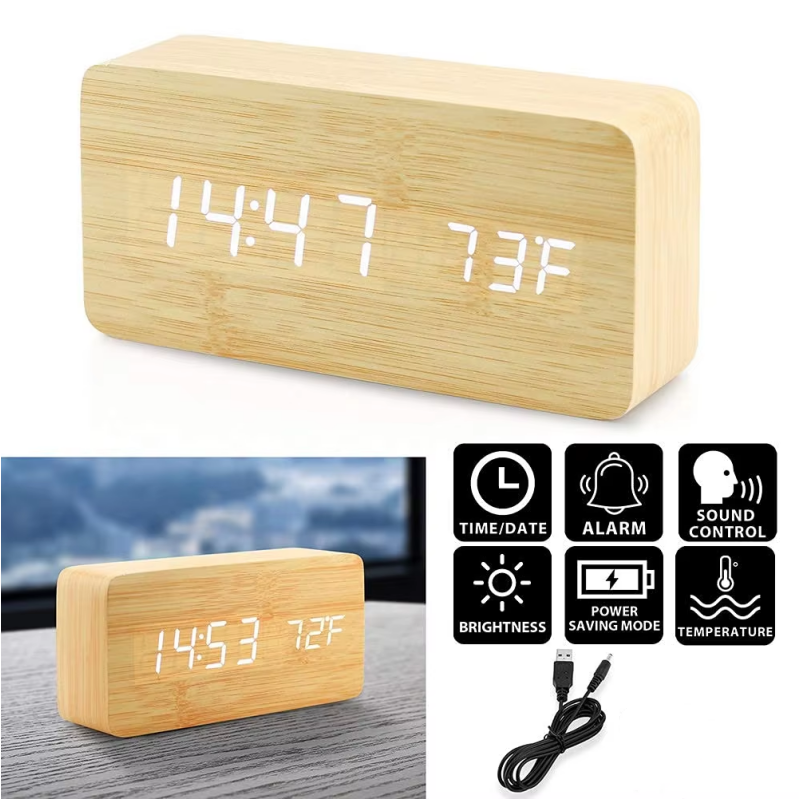 Style bois créatif nouveau petit réveil Style nordique minimaliste chambre chevet muet bois bureau horloges Radio numérique circulaire