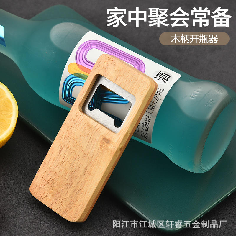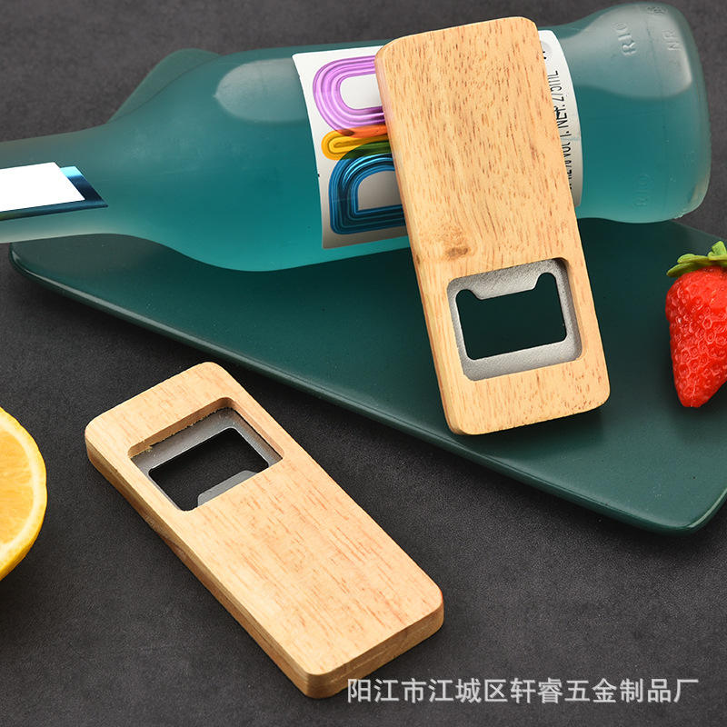 Ouvre-bouteille en bois créatif rectangulaire 10,2 cm x 4,2 cm, ouvre-vin polyvalent pour la maison avec poignée carrée