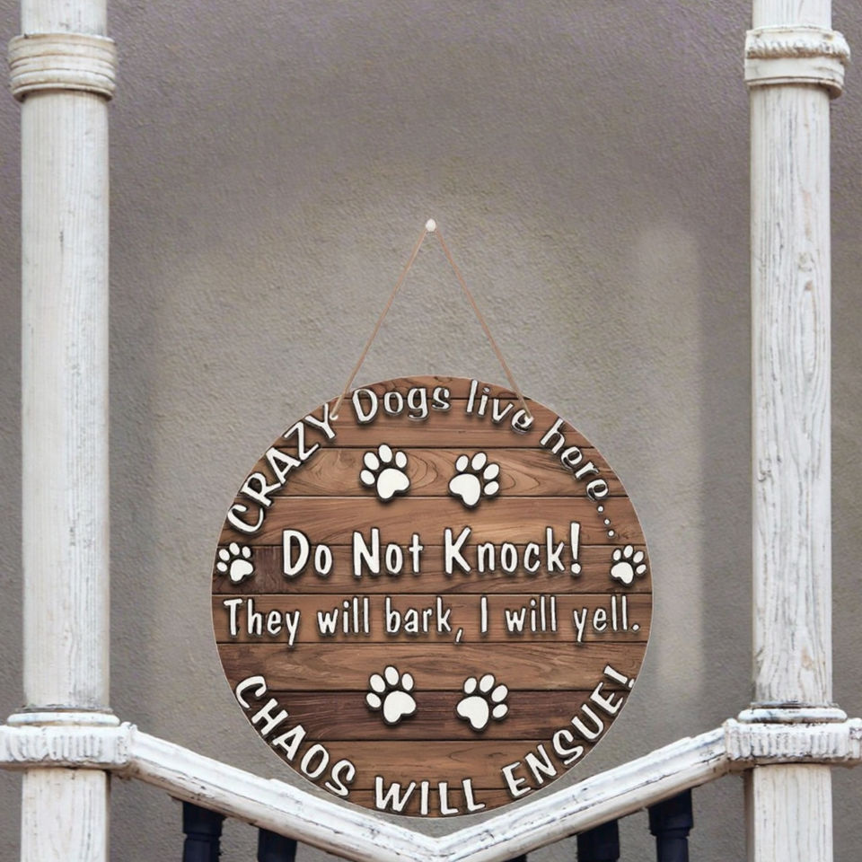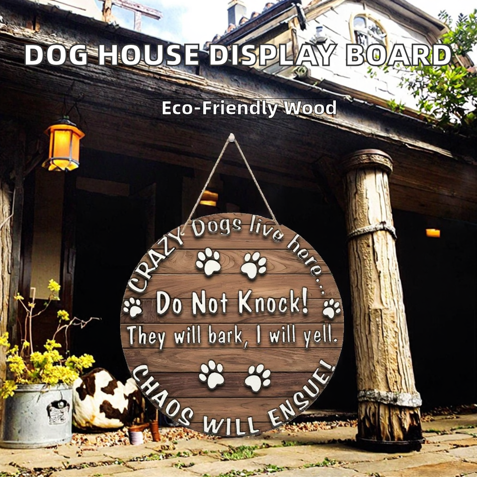Tableau d'affichage en bois créatif Numéro de maison unique pour la décoration de la maison Chien fou vivant ici Tenture murale Fête des pères Noël