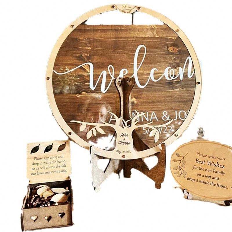 Table de connexion créative en forme de feuille de saule en bois pour décorations de table de mariage et livre d'or pour les fêtes d'anniversaire