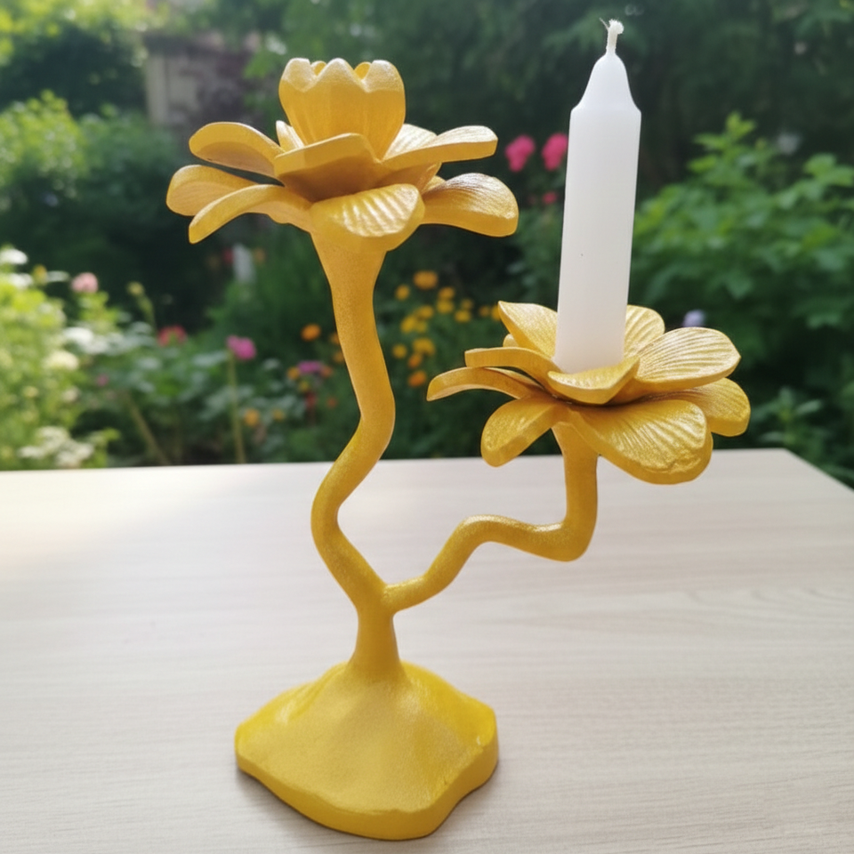 Support de bougie double tête en forme de fleur jaune créative, artistique, pour centre de table du Moyen-Orient, décoration de maison et de mariage, et cadeau