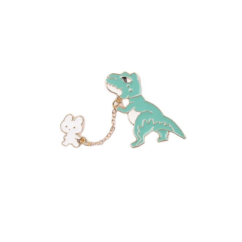 Personnalité créative lapin avec dinosaure mignon dessin animé en émail dur épingle de revers Badge décoratif