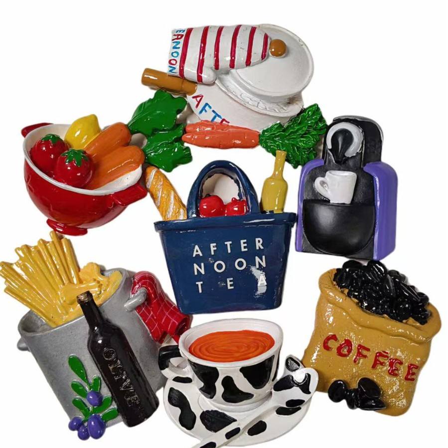 Autocollant de réfrigérateur créatif en résine 3D, imitation vaisselle, décoration magnétique