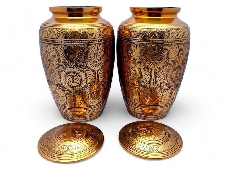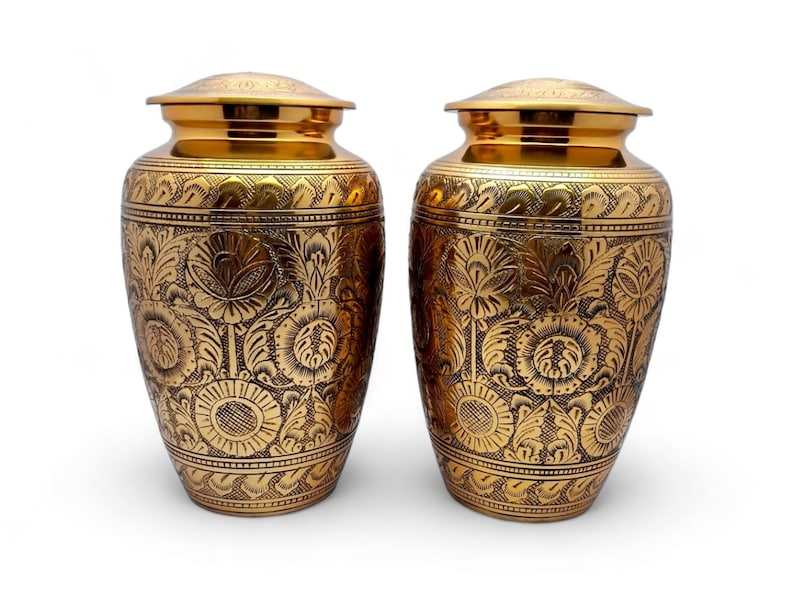 Urne funéraire dorée avec motif gravé noir sur toute la surface, urne commémorative de 10 pouces pour les cendres humaines, capacité jusqu'à 200 livres