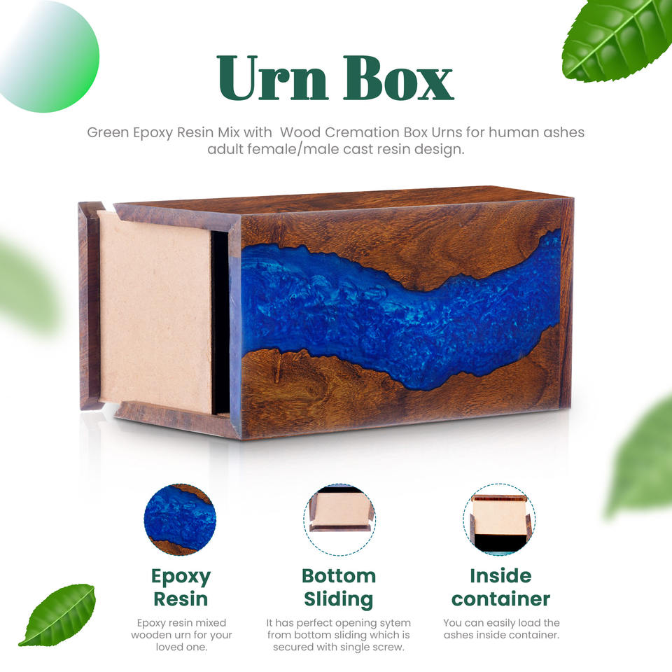 Cremation Urn for Human Ashes & Burial Urns Epoxy & Resin Wood - Female/Male River Blue - Adult 220 Cubic Inch Vintage Urn Box