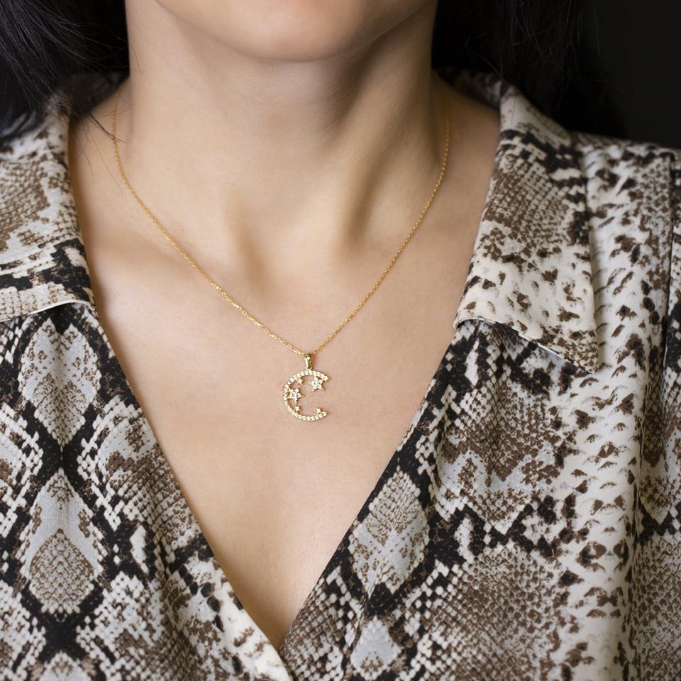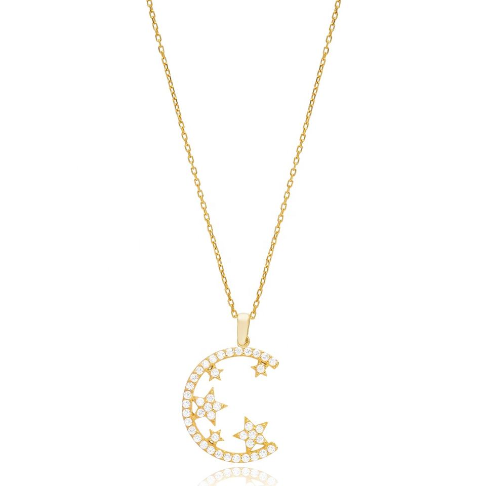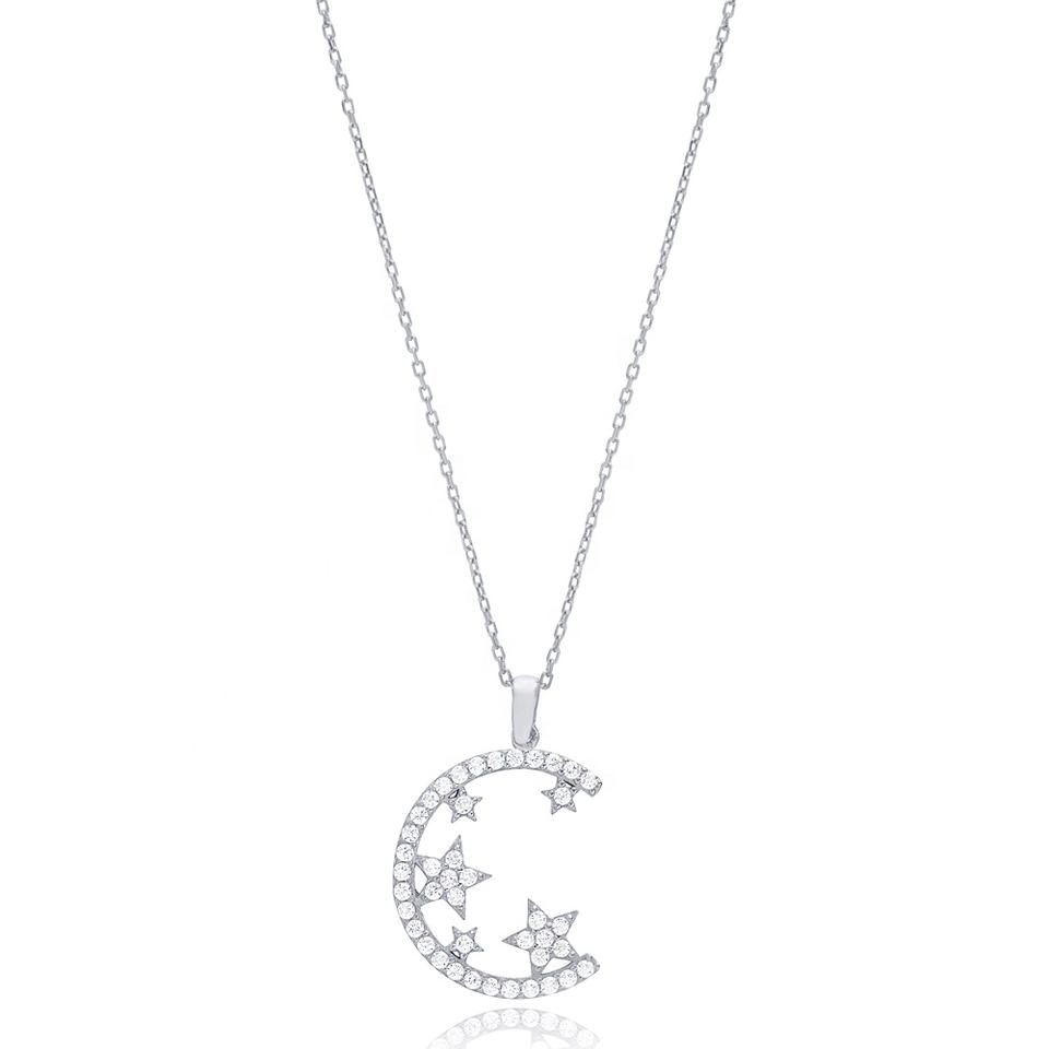 Croissant avec étoiles Design Zircon pierre pendentif à breloque turc en gros bijoux artisanaux 925 collier en argent Sterling