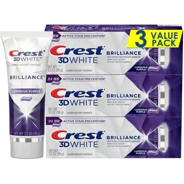 Crest 3 D White Brilliance Purple Teeth Whitening Toothpaste - Pack of 3, 3.5 oz Tubes - Anticavity Fluoride Toothpaste