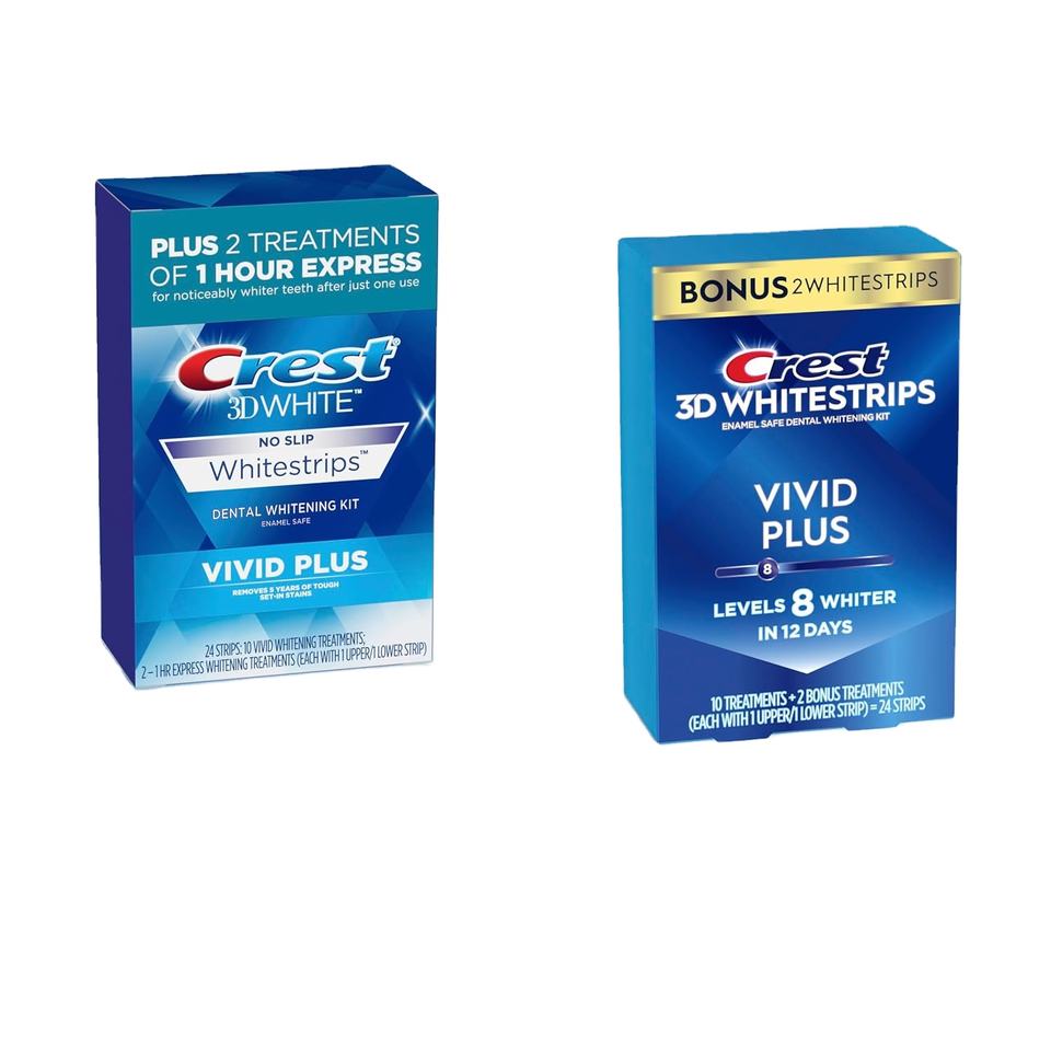 Crest 3D Whitestrips Vivid Plus, Kit de bandes blanchissantes pour les dents, 10 traitements + 2 traitements bonus (chaque traitement comprenant 1 bande supérieure/1 bande inférieure)
