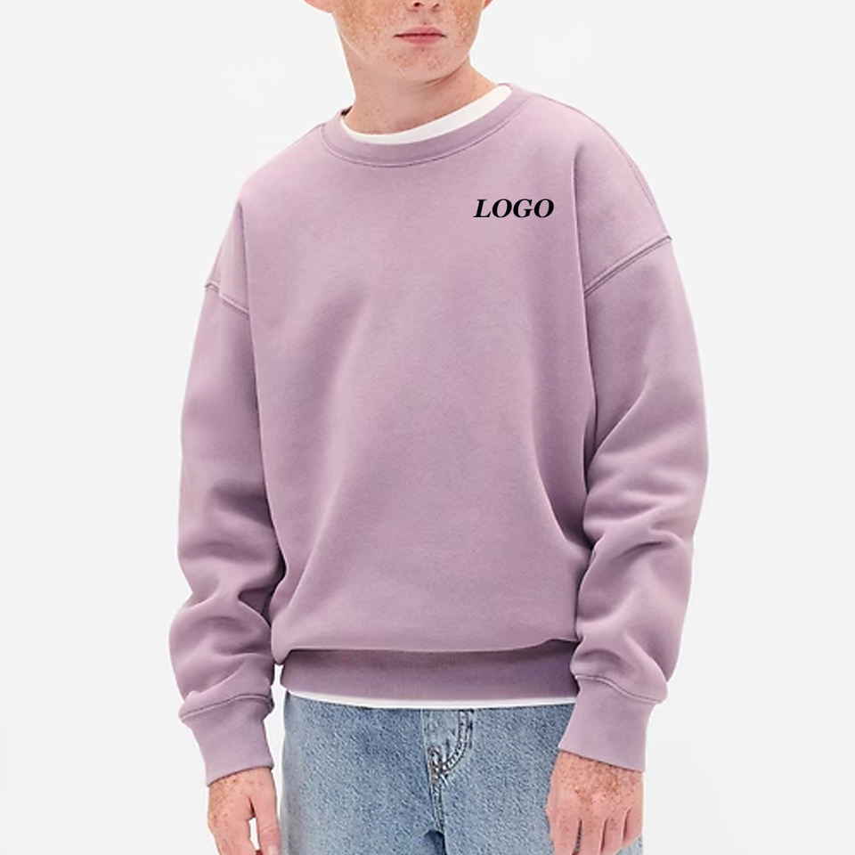 Sweat-shirt à manches longues et col rond pour garçons, couleur unie, logo personnalisé, manches longues / Service OEM de haute qualité