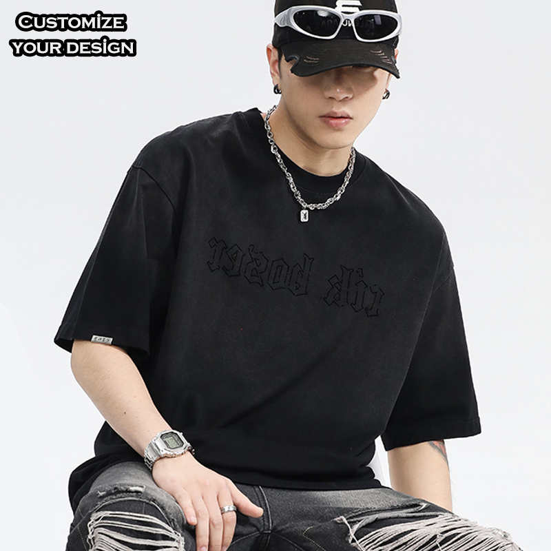 T-shirts surdimensionnés à col rond en coton épais 220 g/m² avec motif uni sérigraphié pour hommes et garçons