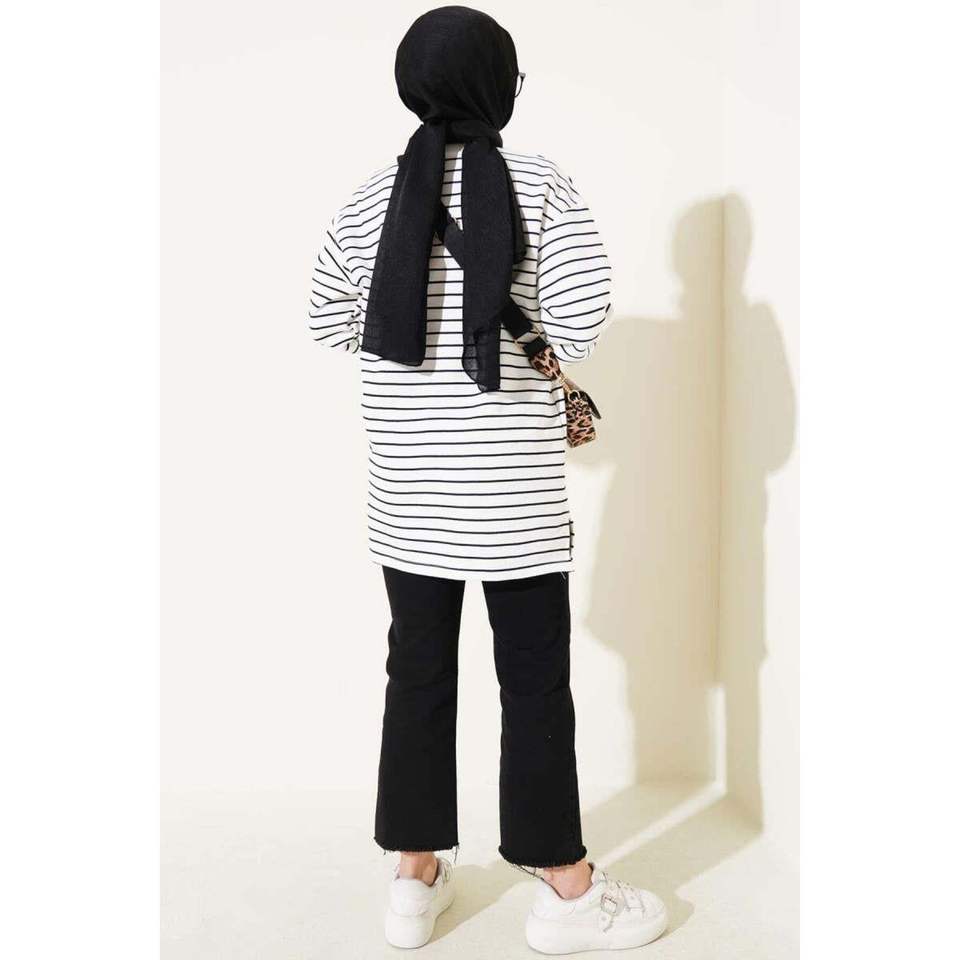 Tunique Rayée à Col Ras du Cou Blanc