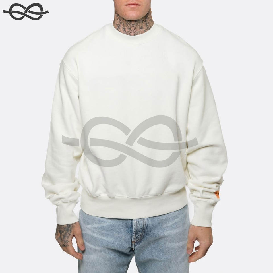 Sweat à col rond Couleur blanche Sweat en coton brodé à manches longues et bordures côtelées avec imprimé personnalisé