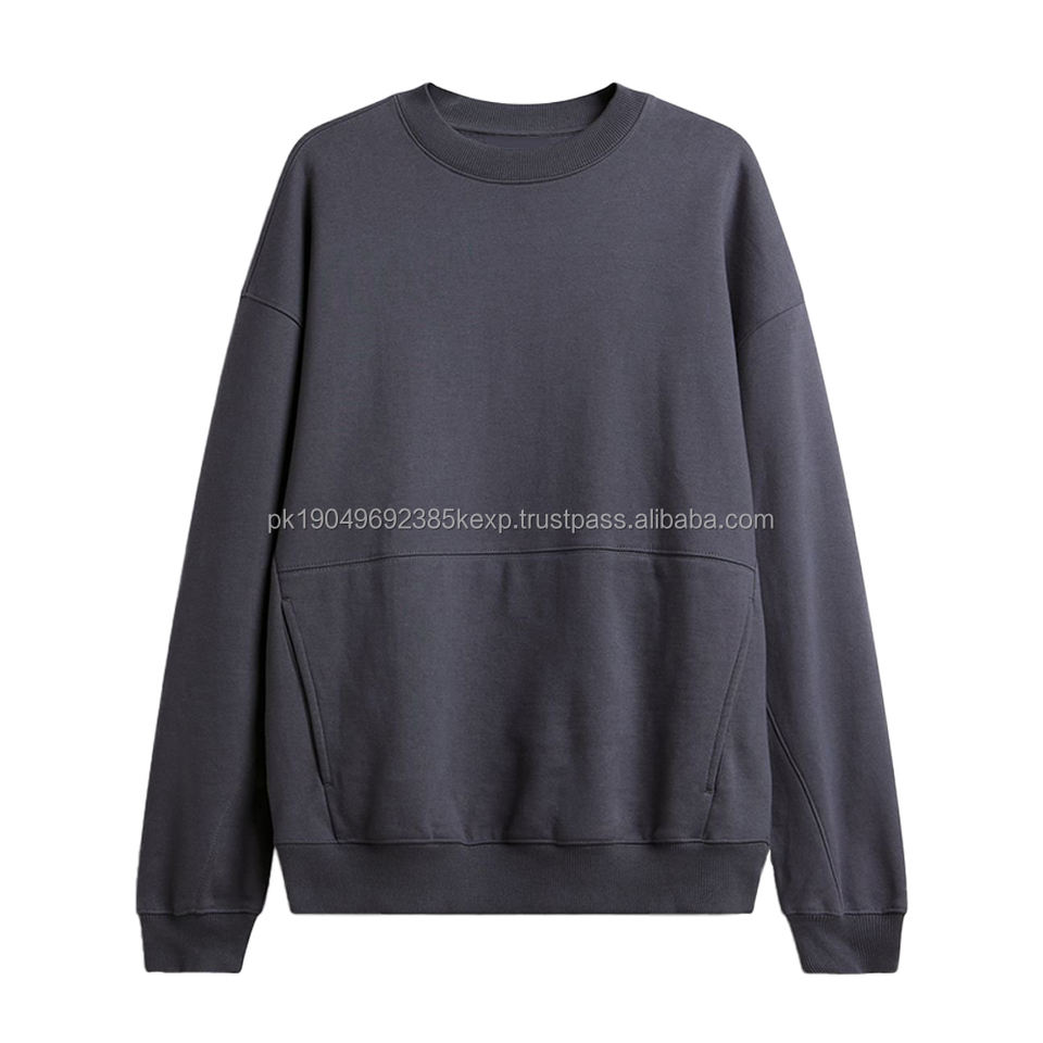 Sweat-shirts à col rond surdimensionnés avec poche latérale personnalisée, sans capuche, coupe ample, sweat-shirts épais, fabricant de sweat-shirts