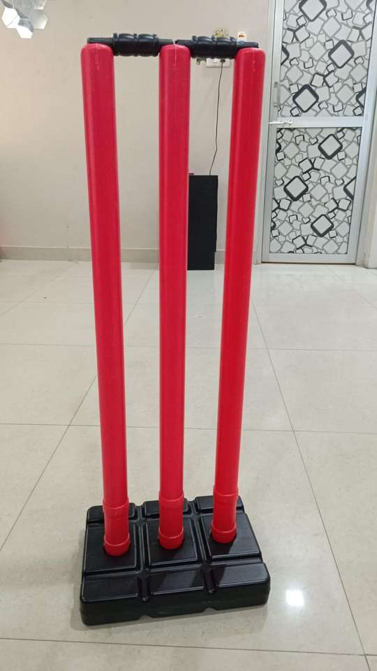 Piquets de cricket Mahaplay en plastique rouge et vert néon pour l'entraînement en extérieur, tailles 24 et 27 pouces, fabriqués en Inde, installation facile, boîte compacte