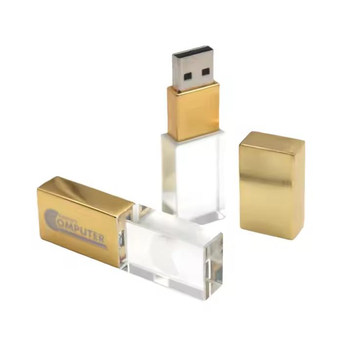 Cristal Gold-colored USB 3.0 Flash Drives with White Papie Box Packaging 16gb 32gb 64gb